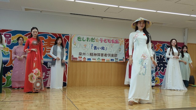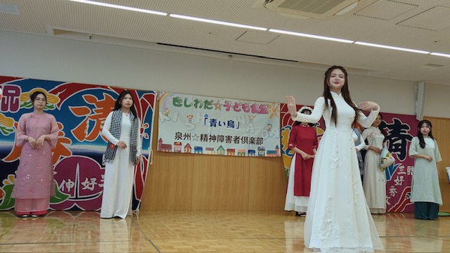 通常の子ども食堂の時間にあわせて呼んでいただき、ベトナム舞踊とベトナム歌謡、そしてアオザイファッションショーにて参加させていただきました。